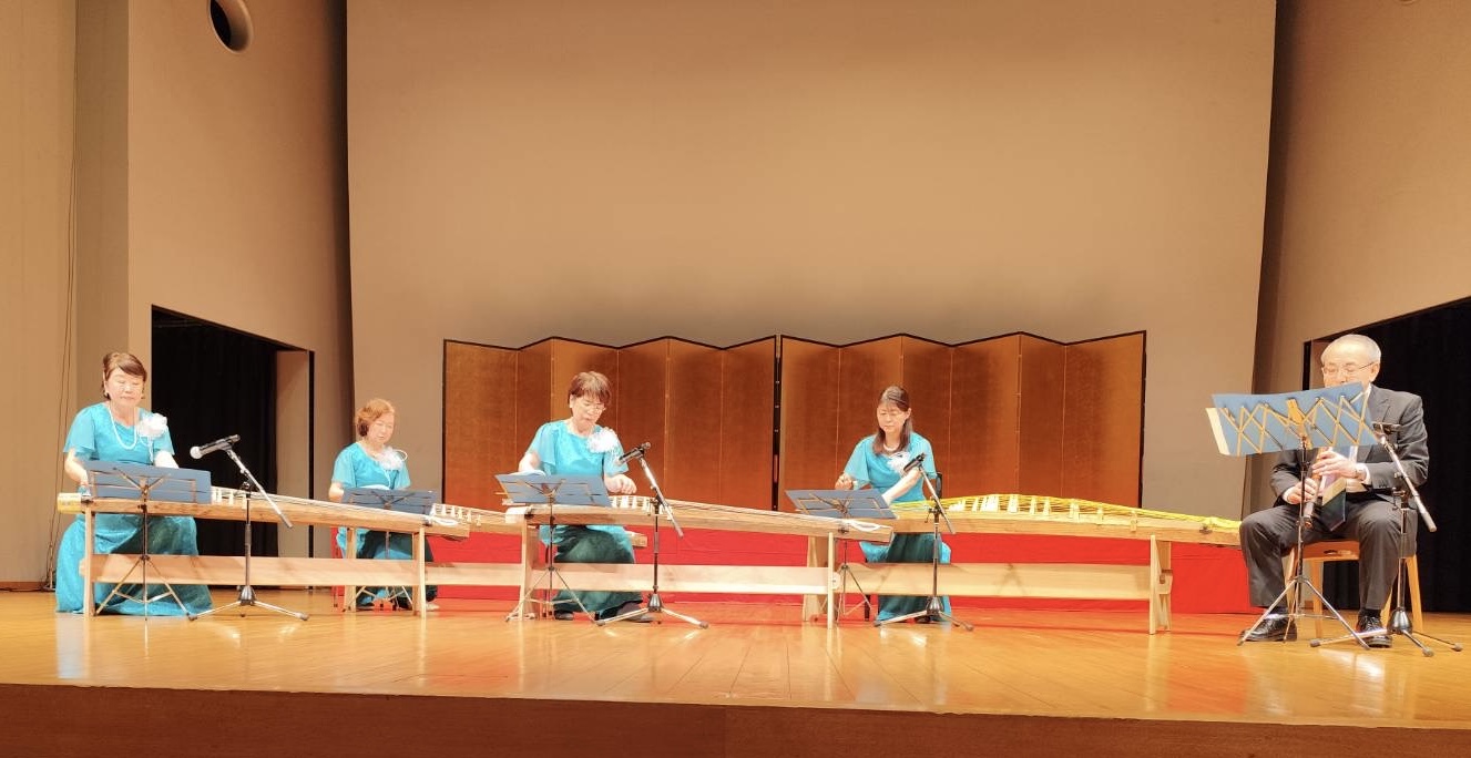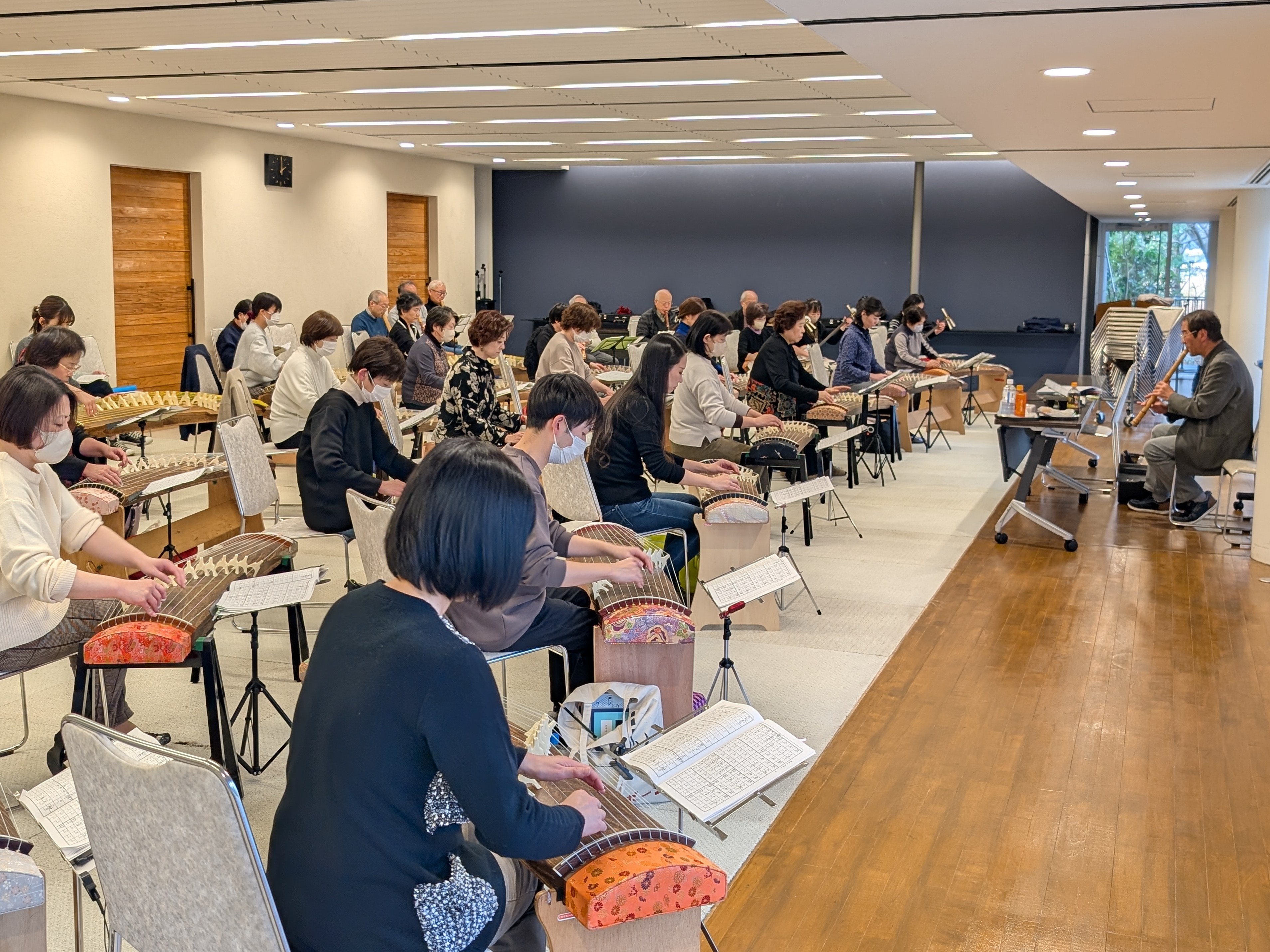 生田流正派大師範の寺林雅楽寛先生とお弟子さんたちの手ほどきで「さくら」「荒城の月」の2曲を習得し、参加者皆さんで演奏することができました。