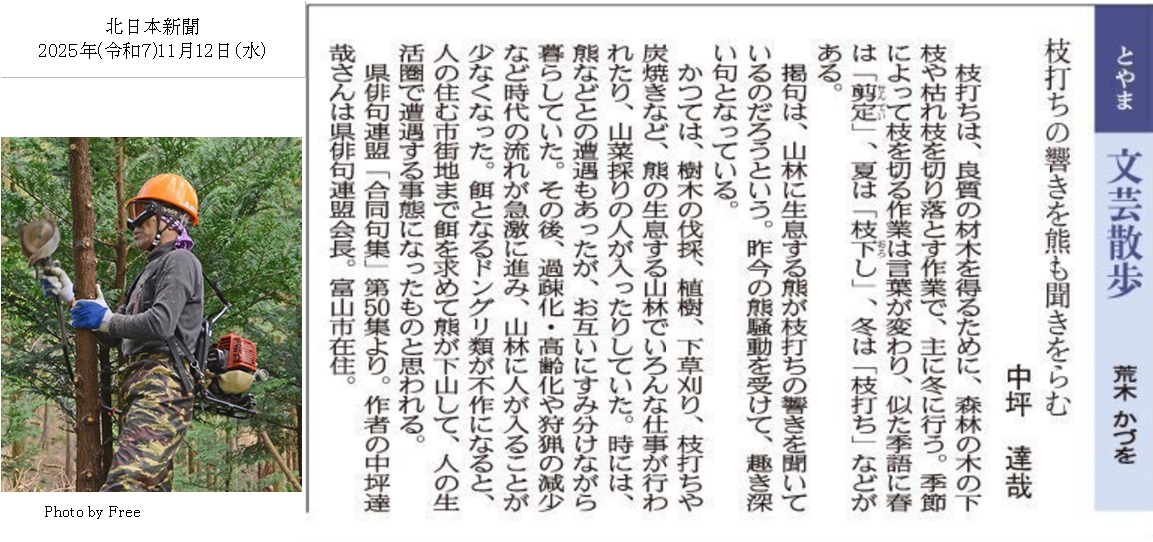 掲載句は、当連盟の各年度発行の「合同句集」に掲載された句より北日本新聞「とやま文芸散歩」に掲載された記事に関連の写真を付けて掲載しています。
