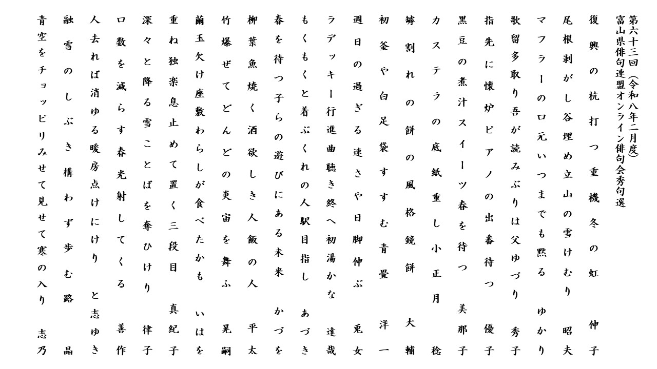 第3回秀句選 令和3年2月6日(土)10時~12時
