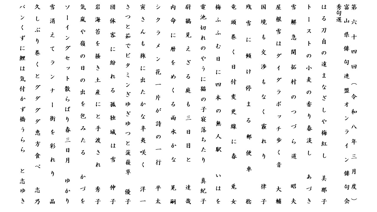 第16回秀句選 令和4年3月6日(日)10時~12時
